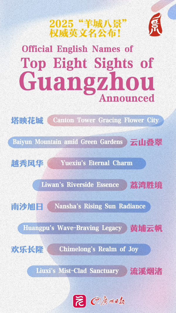 The iconic "Top Eight Sights of Guangzhou" has now been given official English names, following a comprehensive expert-led review aimed at enhancing the city's global cultural presence.