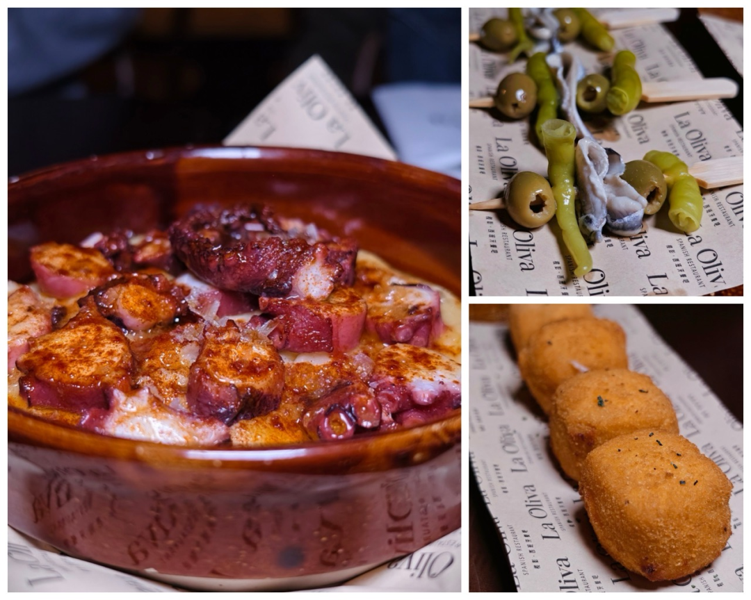 Top Right: green olive, piparra peppers, anchovies, Bottom Right: Creamy Iberian ham croquettes. Image by Rachel Wu/That’s