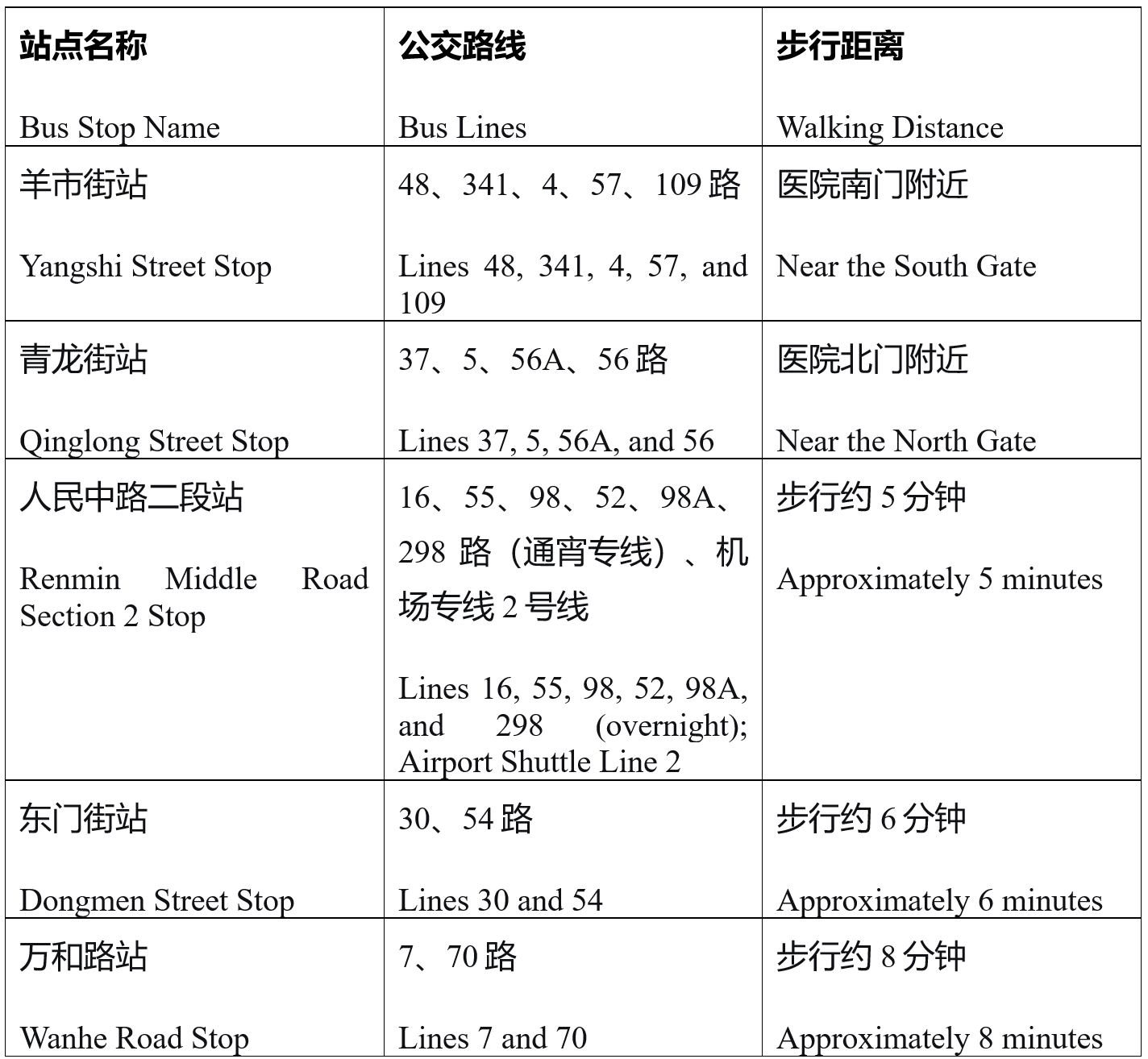 1. Metro Lines 1 or 4 to Luomashi StationExit: Exit AWalking: Go straight for about 200 meters after exiting the station to reach the hospital’s South Gate.