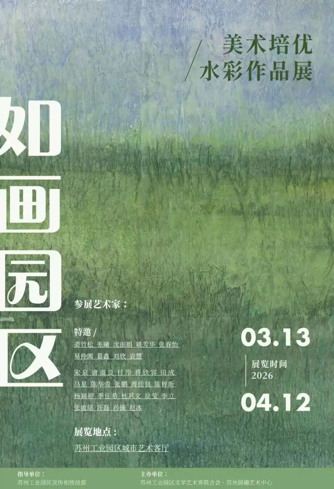 Time: March 13 to April 12Venue: SIP Urban Art Space苏州工业园区城市艺术客厅Over 40 watercolor masterpieces by outstanding young artists from Suzhou Industrial Park are unique interpretations of the city.