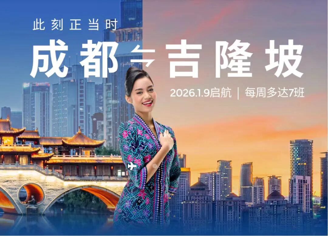 A direct air route from Chengdu Tianfu International Airport to Kuala Lumpur, Malaysia, served by Malaysia Airlines, will be launched on January 9, 2026. Following the introduction of the route, round-trip flights will operate on a daily basis.