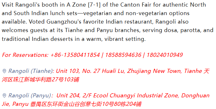 Rangoli, Your Canton Fair Spicy Stop