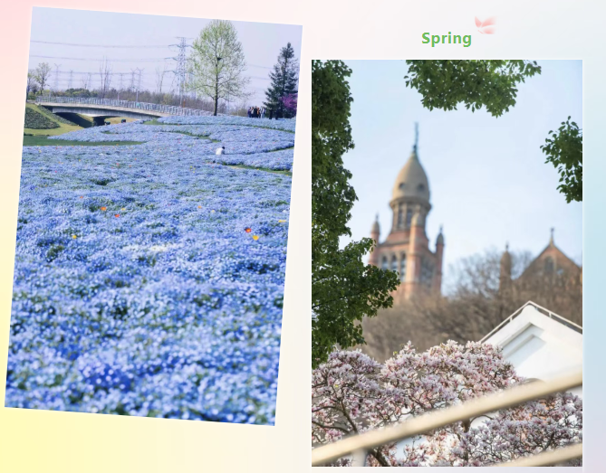 The journey then leads to Chenshan Botanical Garden, where expansive flower fields stretch in gentle waves. In early April, the garden continues to offer a changing mix of spring blooms, with Somei Yoshino cherry trees in flower and baby blue eyes adding fresh color to the garden.