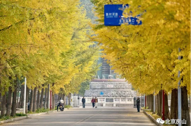 Hancunhe Ginkgo Avenue, located on Luban Road, the central street of the Hancunhe Scenic Area in Fangshan District, reaches its prime viewing period from late October to mid-November. The ginkgo leaves, set against blue skies, white clouds, and quaint traditional houses, create picturesque scenes perfect for social media highlights.