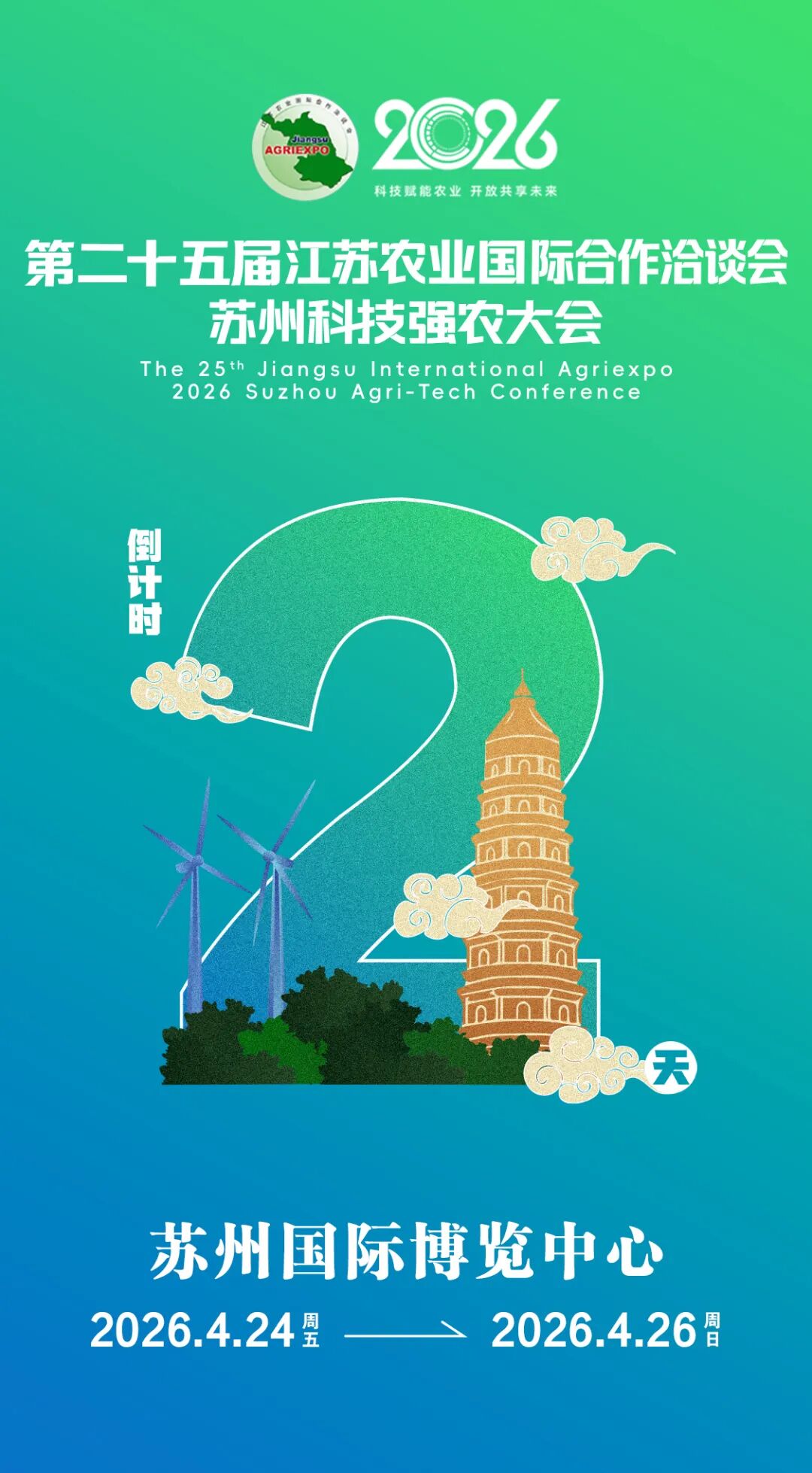 The 25th Jiangsu International Agriexpo, 2026 Suzhou Agri-Tech Conference will kick off Friday at Suzhou International Expo Centre 苏州国际博览中心 . Themed "Technology Empowers Agriculture, Openness Shares the Future," the three-day event will focus on the cultivation of new quality productive forces in agriculture and the high-quality development of agriculture and rural areas.