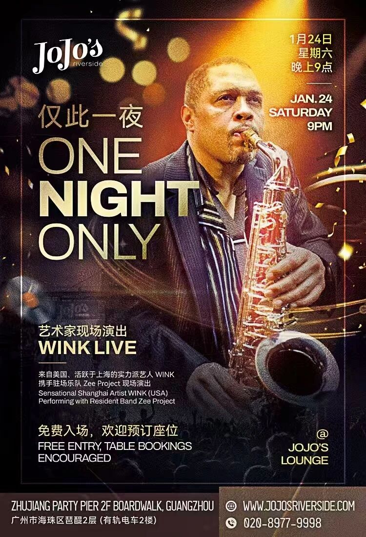 Experience a sensational live performance by Shanghai-based artist WINK (USA), blending experimental sounds with resident band Zee Project. This exclusive one-night event promises an unforgettable evening of music at JoJo's Riverside Lounge in Guangzhou.