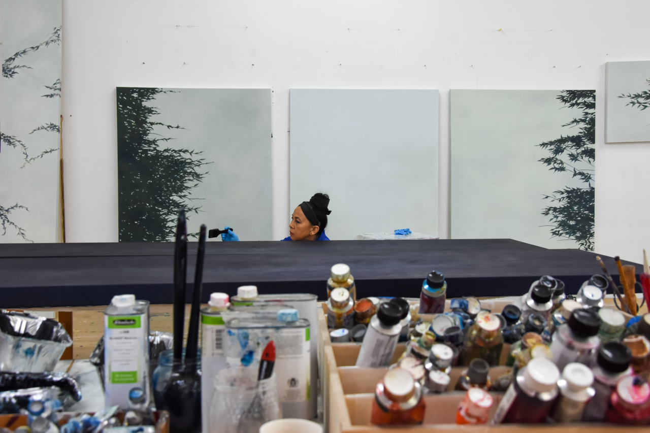 As a daughter of a muti-racial couple, Angela Lyn found her creative practice deeply rooted in her cross-cultural experience. She pointed out that Western painting emphasizes adding light in the final layer, while Eastern art believes that light comes from the inside, and her works have explored a language that integrates both elements.