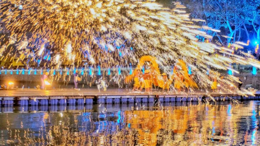 A dazzling array of activities awaits, including live performances across water, land, and air, as well as the intangible cultural heritage art of “iron flower” fireworks.