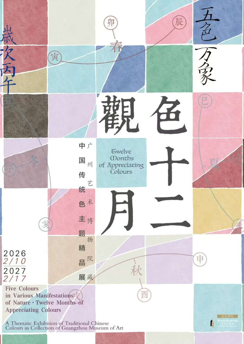 Chinese aesthetics has long been shaped by the philosophy of “Five Colors”—qing (blue-green), chi (red), huang (yellow), bai (white) and hei (black)—closely connected to the ancient cosmology of the Five Elements: wood, fire, earth, metal and water. These colors appear throughout classical Chinese art, design and daily life, forming a visual language that has evolved across centuries. Following the success of its earlier exhibition exploring the modern interpretation of traditional Chinese colors, Guangzhou Museum of Art now presents Five Colours in Various Manifestations – Twelve Months of Appreciating Colours. Drawn from the museum’s own collection, the exhibition brings together a curated selection of artworks that reflect how traditional color aesthetics were expressed in historical works and how they continue to inspire contemporary artistic thinking.