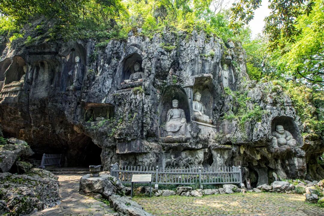 Feilai Peak is a rugged limestone hill located just in front of Lingyin Temple in Hangzhou, whose wild rock formations set it apart from the surrounding mountains. It is renowned for its more than 380 Buddhist grotto statues carved between the 10th and 14th centuries, spanning the Five Dynasties, Song, Yuan, and Ming dynasties.