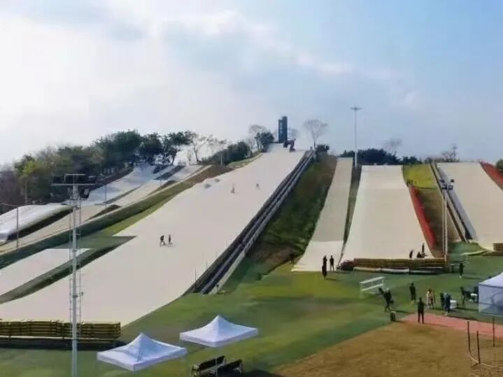 As the largest dry ski resort in southwestern China, the resort opens all year round. It features nearly 10 specialized slopes, including beginner-friendly slopes and professional jumping platforms. The venue uses independently developed “enoki mushroom” dry ski mats that simulate real snow with over 90% authenticity.