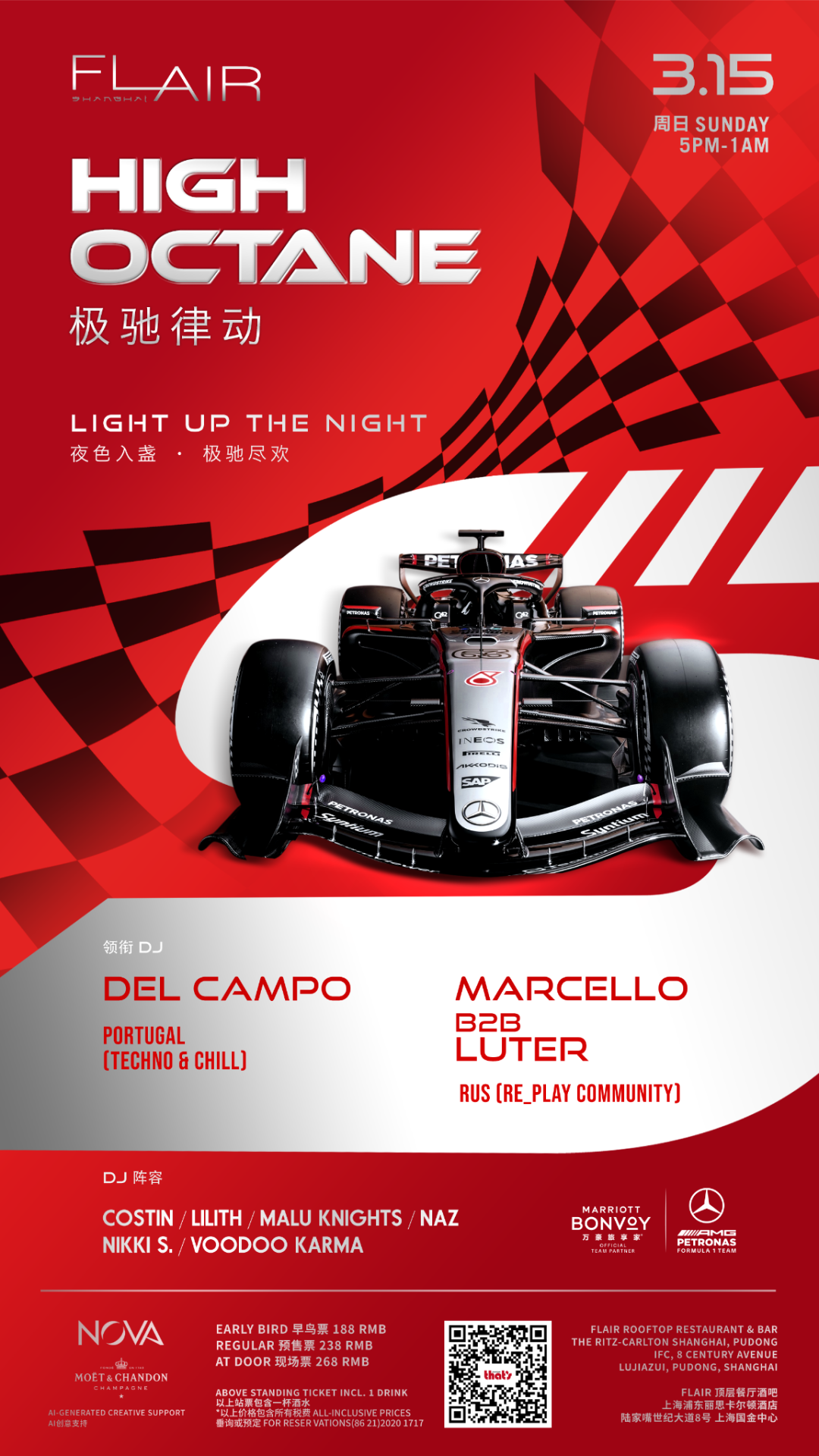 For the final race weekend in Shanghai, HIGH OCTANE – Racing Weekend After-party ignites the skyline with pure podium energy, speed, and celebration.