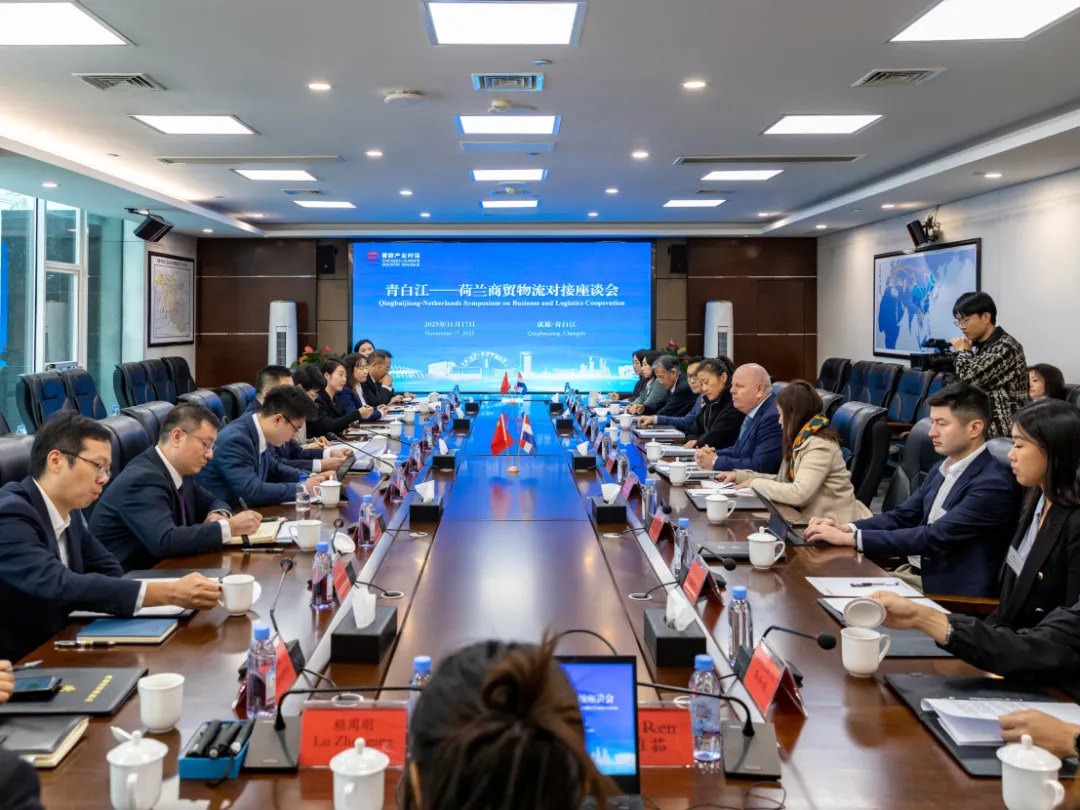 On the afternoon of November 17, the delegation headed to Qingbaijiang District. During the “Qingbaijiang—Matchmaking Symposium for Commerce, Trade, and Logistics Sectors of the Netherlands”, representatives of Dutch enterprises engaged in in-depth discussions on deepening cooperation in CHINA RAILWAY Express and other areas with officials of the People’s Government of Qingbaijiang District and relevant departments, as well as representatives of enterprises in the district, such as Ronghe Group, Sichuan Port and Shipping Investment Group, and Chengdu Rongou Investment Development Group.