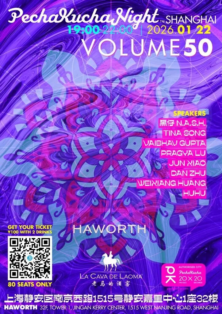 A milestone moment: PechaKucha Vol. 50—the fiftieth edition in Shanghai and the first event of the year. Bigger energy. Bolder ideas. Zero slow starts.