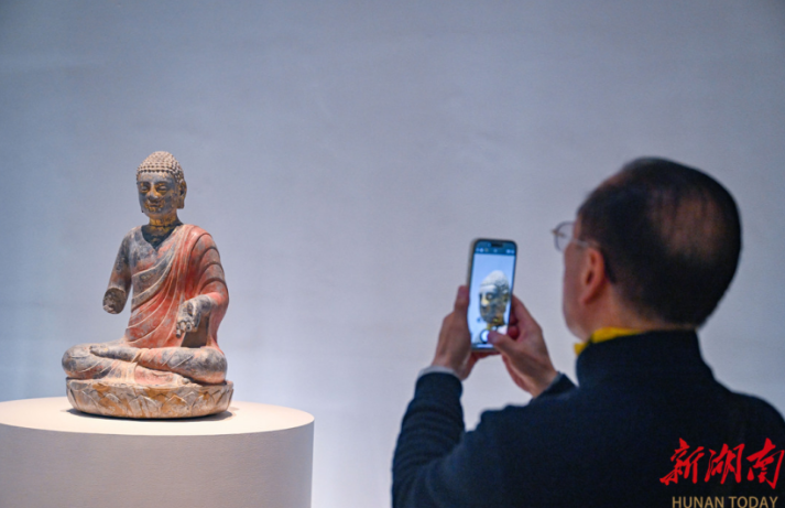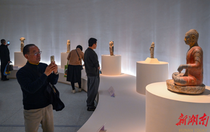 An art exhibition featuring Qingzhou-style Buddha statues kicked off at the Hunan Museum on November 21. The exhibition brings together 67 exquisite Buddha statues of the Northern Dynasties (386-581) from multiple cultural institutions, including the Qingzhou Museum, the Zhucheng Museum, and the Shandong Museum. With "Oriental Aesthetics" as its core theme, the exhibition systematically traces the artistic lineage of Qingzhou-style Buddha statues from an academic perspective. Through innovative exhibition design, digital displays, educational activities, and cultural and creative product development, it creates a comprehensive cultural experience that bridges the past and present while blending aesthetics and spirituality. It invites visitors to explore the aesthetic philosophy behind those eternal smiles. (Photo/Guo Liliang, Hunan Daily)