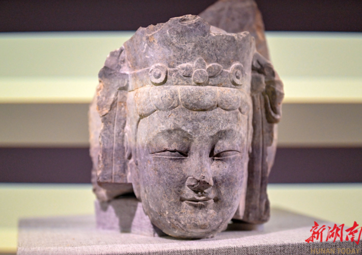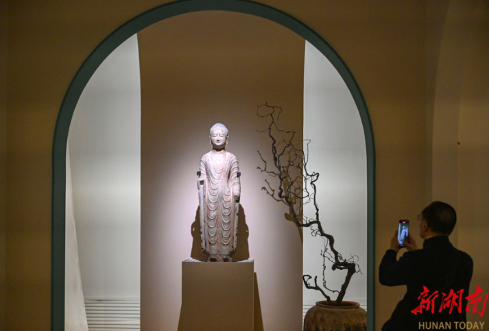 An exquisite Qingzhou-style Buddha statue of the Northern Dynasties on display. (Photo/Guo Liliang, Hunan Daily)