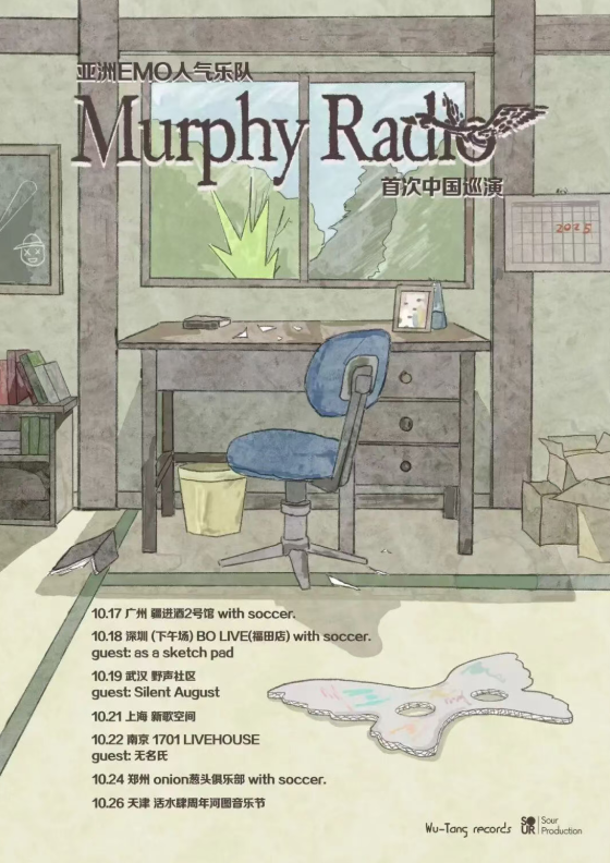 Two of Asia’s fiercest EMO forces collide in Guangzhou. From Indonesia, math rock/EMO outfit Murphy Radio brings intricate rhythms and raw emotion, fresh off their acclaimed album Debu Kan Kembali Menjadi Debu. Joining them is Japan’s post-hardcore/EMO band Soccer, known for explosive live shows and cathartic vocals. One night, two countries, endless feeling—this dual showcase is a rare chance to witness the pulse of Asia’s underground scene.