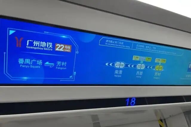 According to Guangzhou Metro, the latter section of Line 22 (Chentougang–Fangcun) is set to officially open to the public before the end of 2025 and will be connected with the line's initial section (Panyu Square–Chentougang).