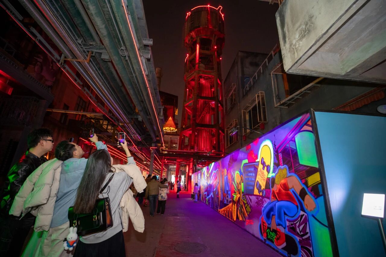 Giant Spring Festival couplets cascade down from steel trusses, while digital projection twines round rust-tinged pipes. A festive touch with trendy energy flows through the art landmark. Two Spring Festival specials, the 2026 Eastern Suburb Memory Light and Shadow Art Show and Arte Museum’s Chinese New Year Digital Art Special Exhibition “Hape Prime”, will present visitors a diverse range of digital art experiences.