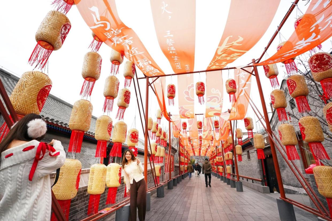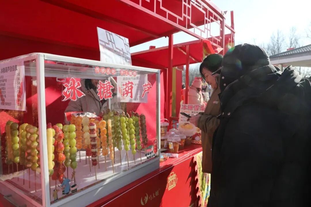 The first-ever Madajie Chinese New Year Goods Carnival, taking place at Changjin Road in Shunyi District, opened on January 24 and will last until February 12. The market features nearly 60 brands, with stands selling foods, daily necessities, and all sorts of household items. An intangible cultural heritage experience area has also been set up, where visitors can try activities such as blowing sugar figures and making crisp candies. On weekends, dragon and lion dances, drum performances, and diyangge (a traditional folk dance from northern China), will be staged in rotation.