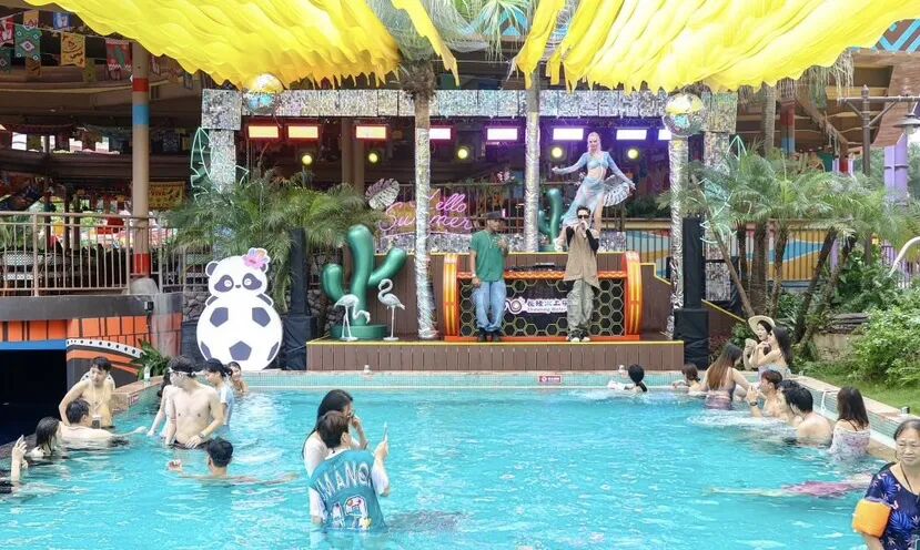 The Southeast Asia zone showcases Thai-style dance performances. In the Western Europe zone, brass band music accompanies Mediterranean-style bubble shows. The Amazon rainforest section offers yoga sessions for relaxation, while the Latin America zone features samba parties, floating stages, and aqua Zumba. The Hawaii zone is designed for families, featuring hula dance events and a dedicated water-amusement zone for children.