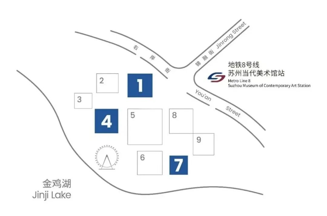 By Metro: Take Suzhou Metro Line 8 to Suzhou Museum of Contemporary Art Station (Exit 1).