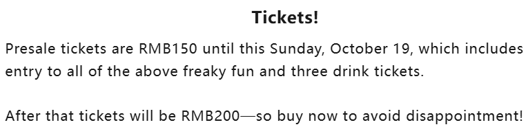 That's Shanghai Halloween Party Tickets on Sale Now!