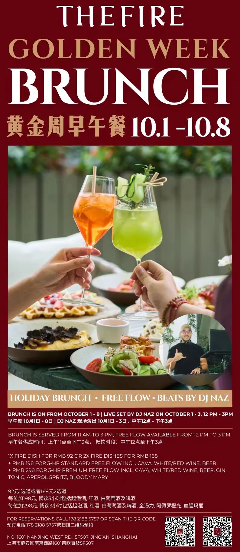 Enjoy a stylish brunch experience at THE FIRE all Golden Week, with DJ Naz playing the first three days.