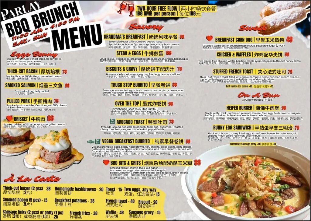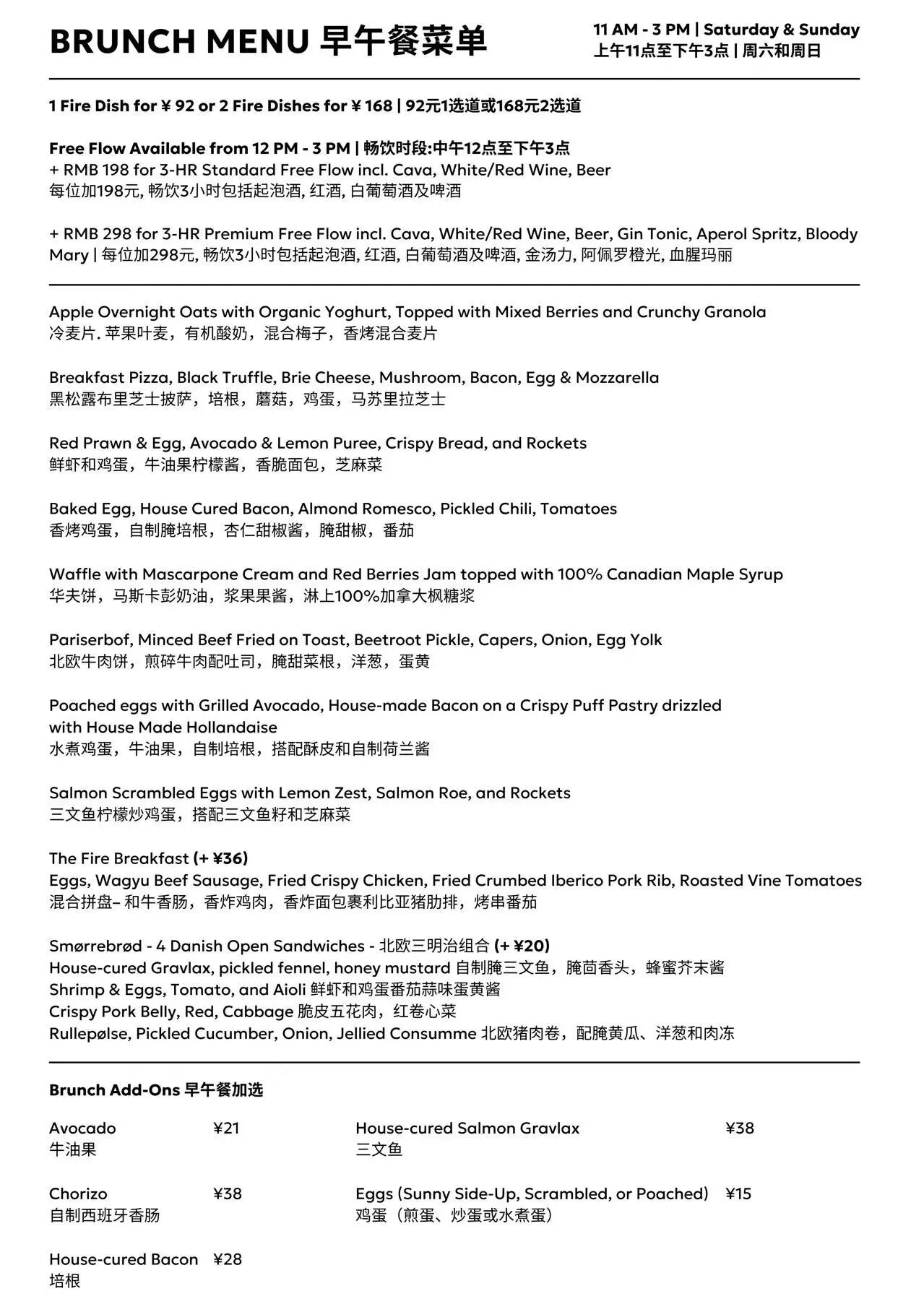 There is also the option to add two hours of free flow on selected drinks to your brunch experience for just RMB188! Sip, savor, and enjoy the good vibes.