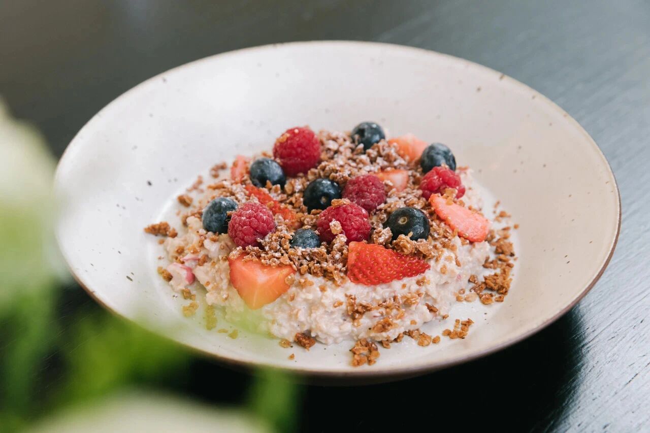 Apple Overnight Oats with Organic Yoghurt, Topped with Mixed Berries and Crunchy Granola