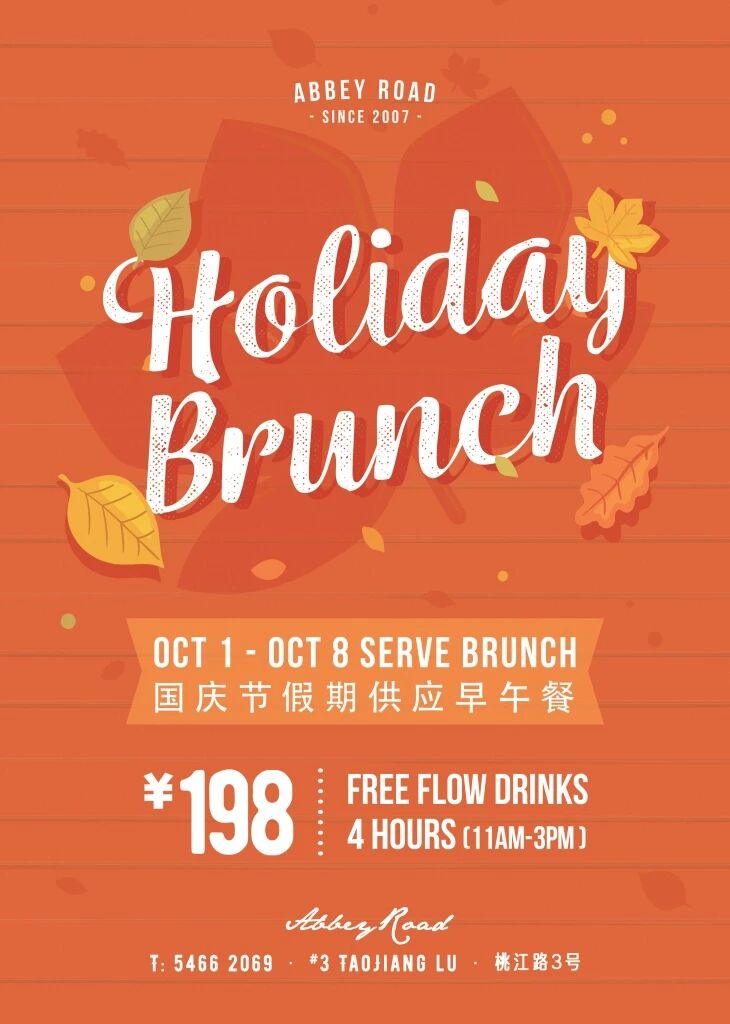 Open all holiday, order any item from Abbey Road's lip-smackingly tasty brunch menu below and add four hours free flow for just RMB198.