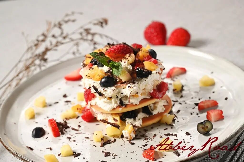 Strawberry Fields Forever (RMB58): Sweet Pancakes, Whipped Light Cream, Mixed Seasonal Fruit