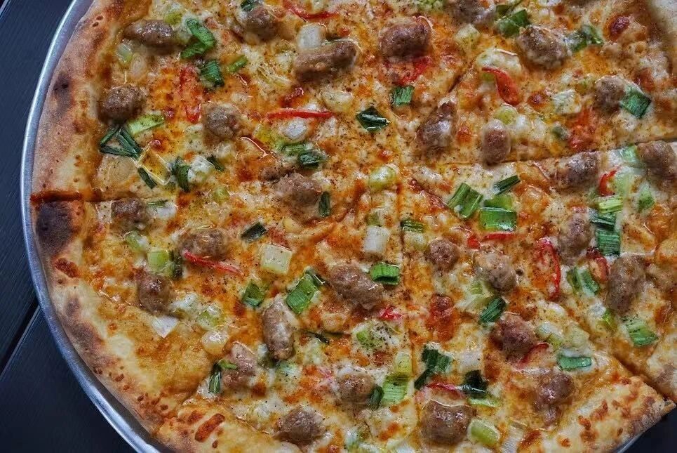 Homeslice's New York-style pizzas with sourdough crust are a Shanghai favorite––big, juicy slices with inventive, seasonal toppings that you fold in half like a sandwich.