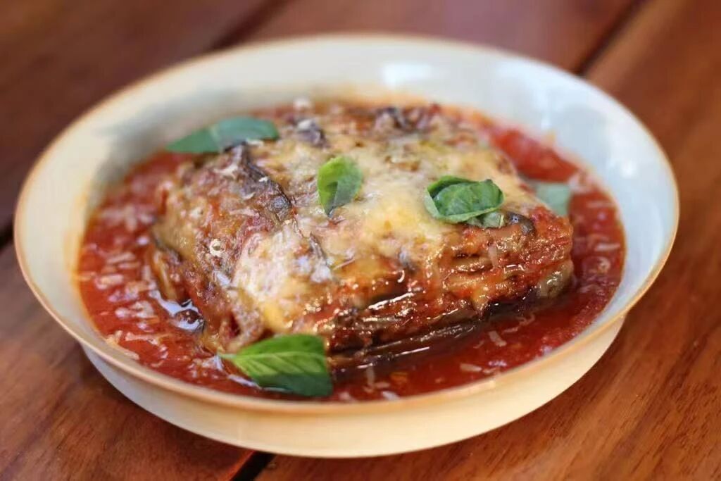 Melanzane Parmigiana (RMB48): Eggplant, Tomato, Mozzarella. Photo by Jimmy Jordan / That’s
