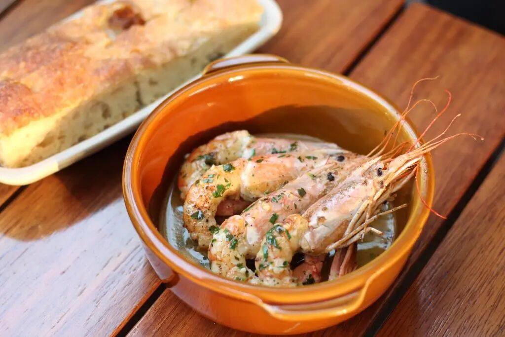 Garlic Butter Shrimp with Focaccia (RMB55): Red Shrimp, Garlic, Lemon. Photo by Jimmy Jordan / That’s