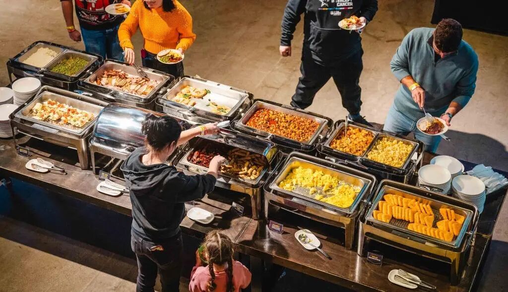 Expect a wide selection of freshly made hot dishes, crisp salads, a carving station with smoked BBQ meats, handcrafted pizzas, and a dessert and fruit bar… all to satisfy every appetite.