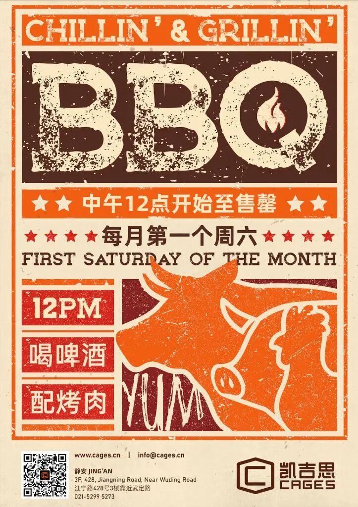 On the first Saturday of each month, Cages Jing'an roll out their award-winning southern style BBQ from noon until sold out, so don't miss out... especially on their Beefzilla Sandwich!