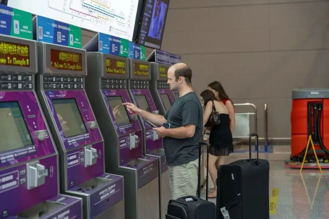 Foreign passengers purchase tickets at Chengdu Tianfu International Airport.Photo by Chengdu Release.