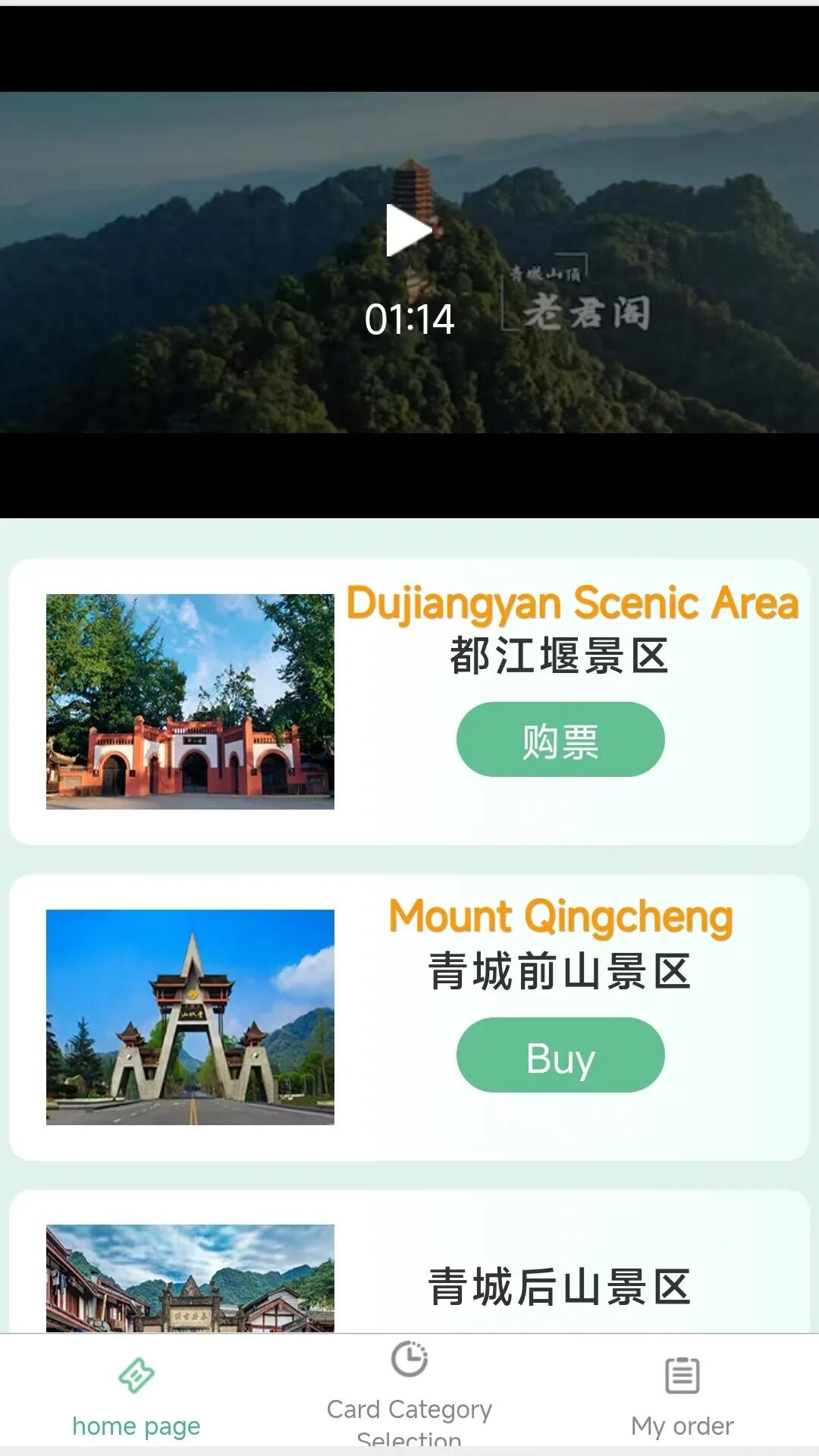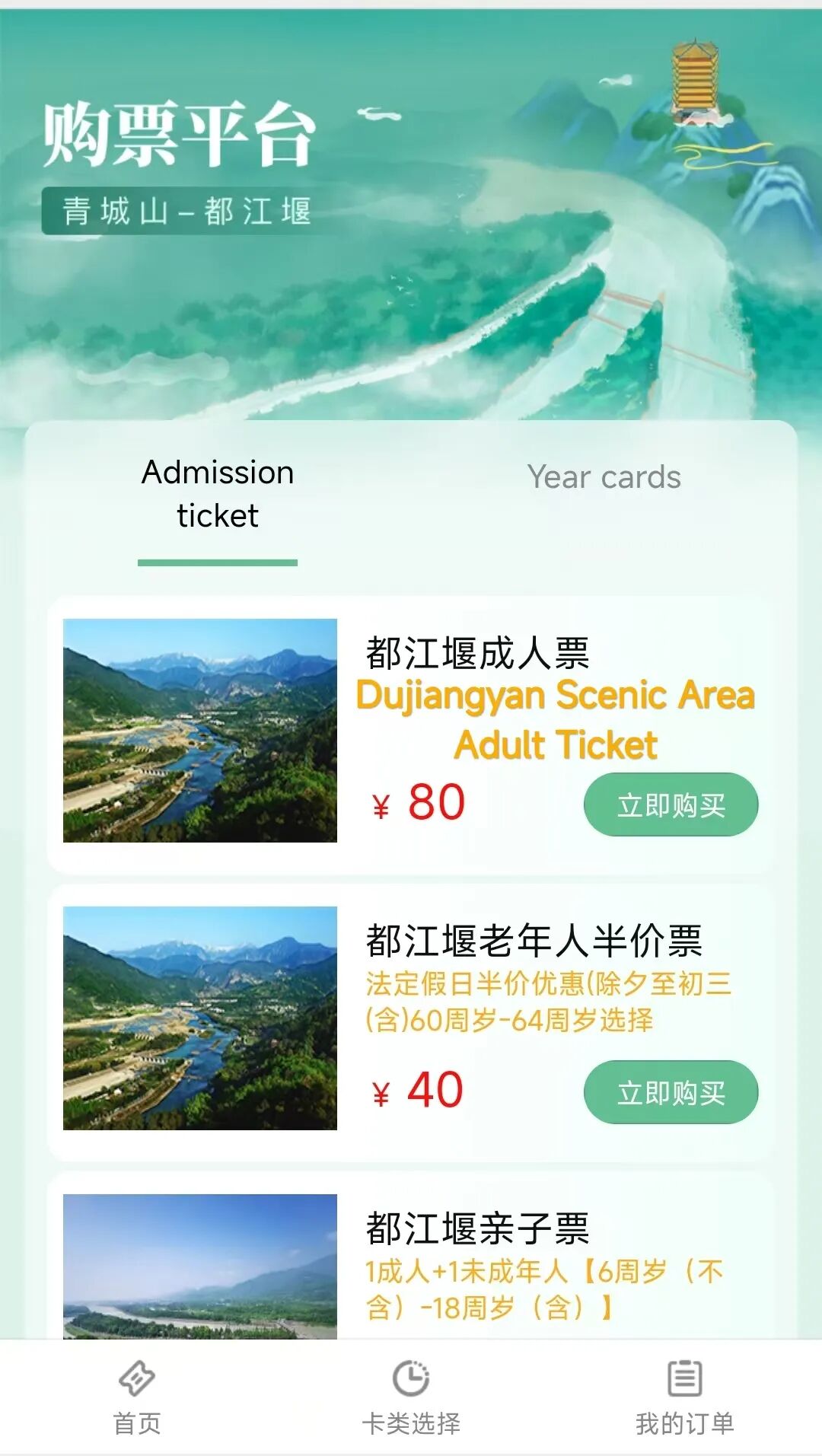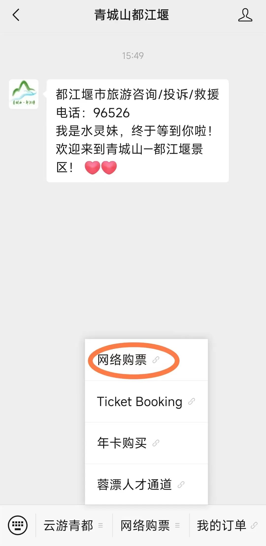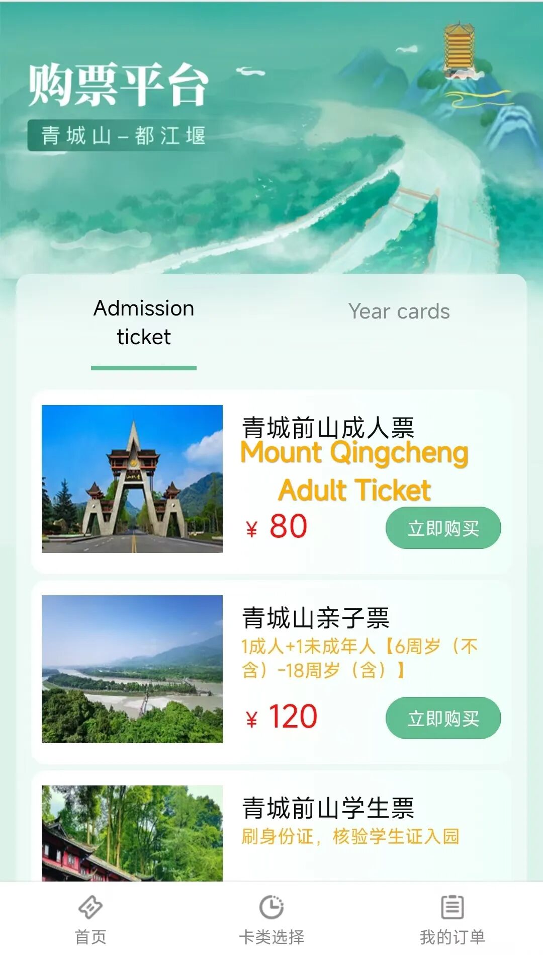 Tickets can be booked with real names through the WeChat Official Accounts of the scenic areas—“青城山都江堰” (“Mount Qingcheng and Dujiangyan Irrigation System”) and “悦游都江堰” (“Fun Travel in Dujiangyan”).