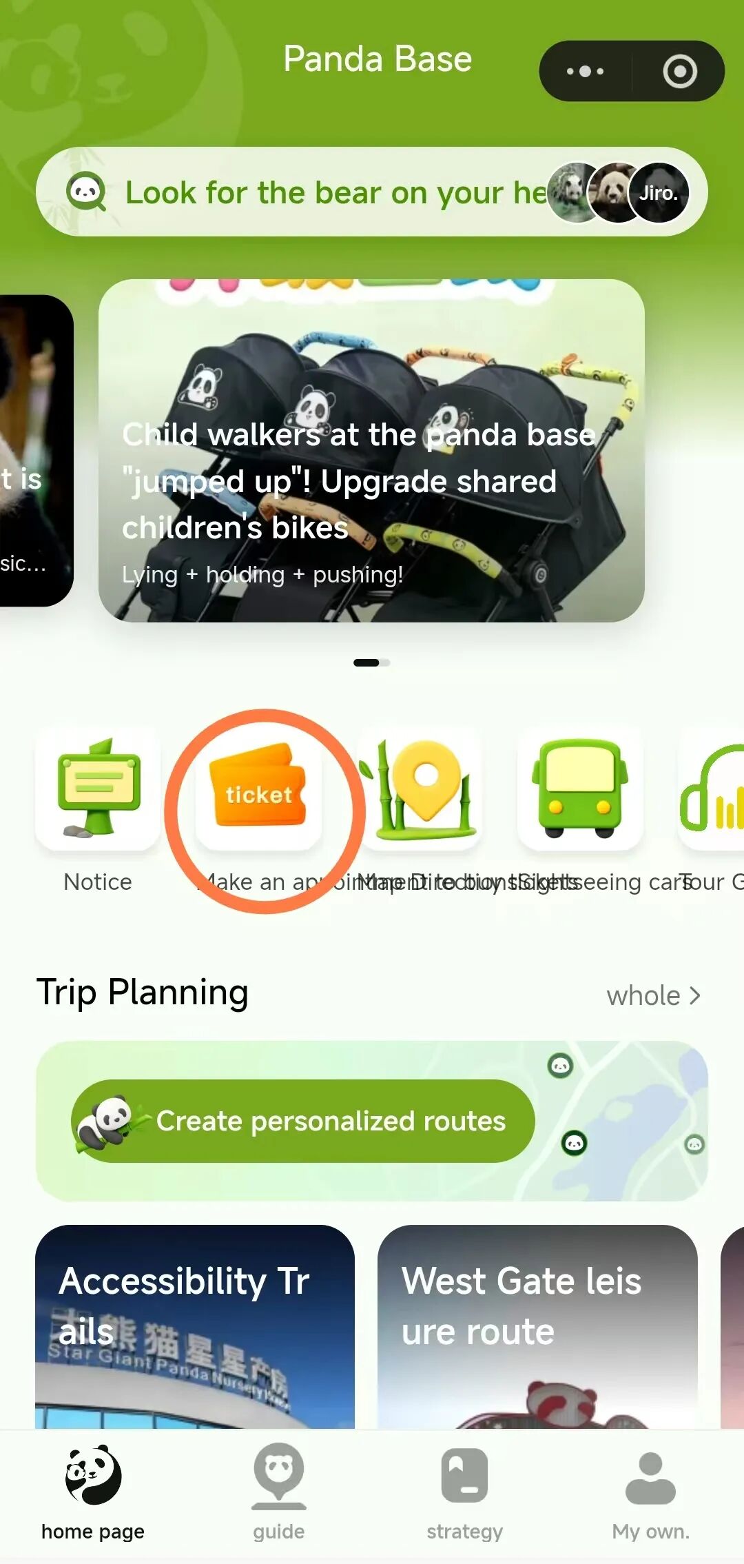 Tickets must be booked online with real names. Visitors can book tickets in advance through the “成都大熊猫繁育研究基地” (“Chengdu Research Base of Giant Panda Breeding”) WeChat Official Account or the namesake WeChat Mini Program.