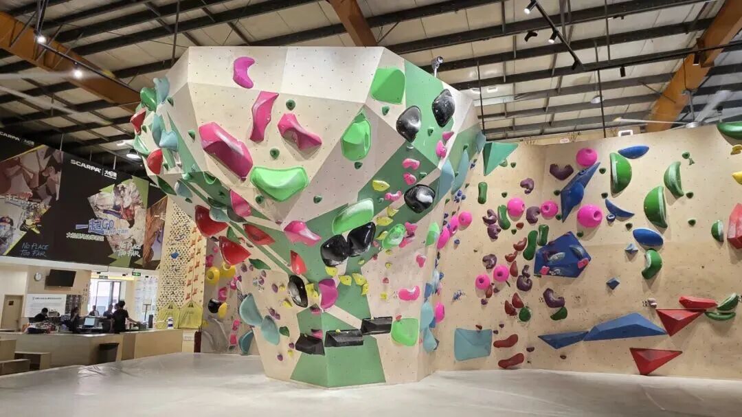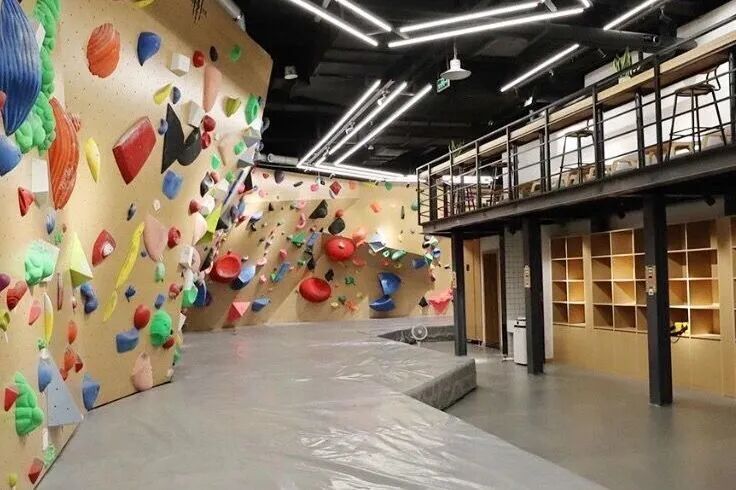 The gym’s wall area exceeds 1,200 square meters, including an advanced climbing zone, a bouldering zone, and a strength training zone.