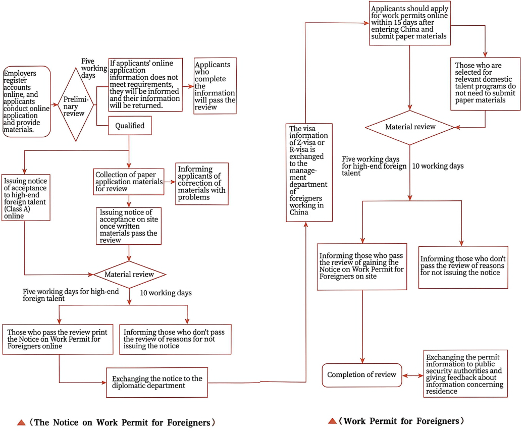 Foreign nationals who enter China with a Z visa can apply for a work residence permit in accord- ance with the relevant provisions; for those who come to China with other visas, have been employed by enterprises and public institutions in China, have completed the work permit, and have no time to leave the country to apply for a work visa can apply for a work residence permit.