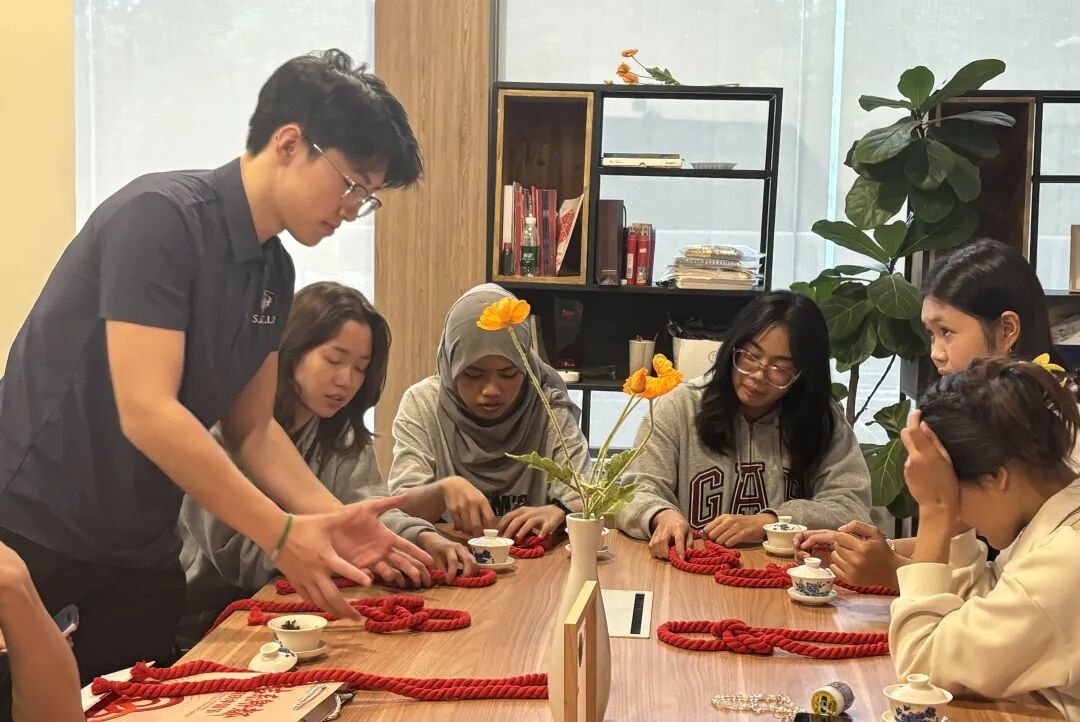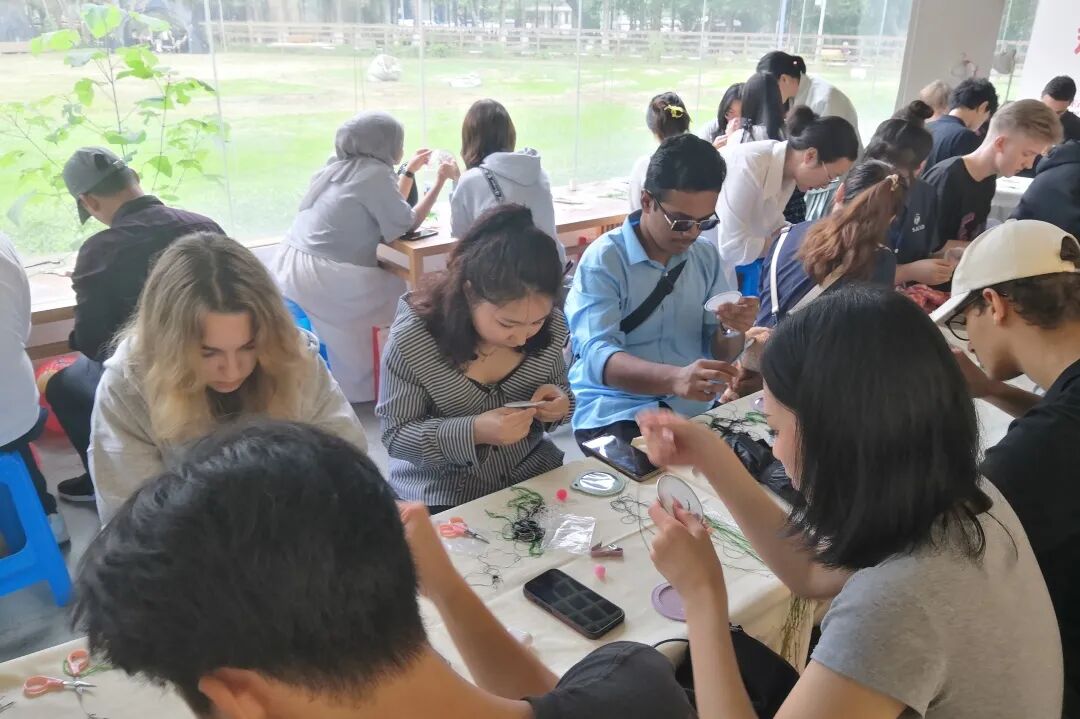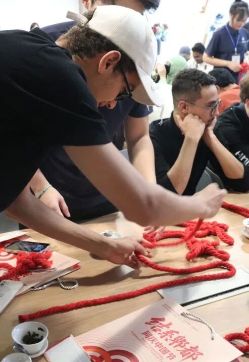 During the event, the foreign nationals engaged wholeheartedly: after signing in, they eagerly captured moments at the photo zone; they actively tried chuiwan, a traditional ball game, their laughter filling the air; during the handmade lantern session, they carefully assembled their creations, weaving Mid-Autumn blessings into their designs; the mooncake blind box draw became a highlight, as participants unveiled their surprises with anticipation and joy. Additionally, the event featured an exceptional gaiwan tea (tea served in lidded bowls) demonstration, immersing participants in the art of “Chinese kung fu tea”. By trying their hands at making traditional Chinese knots and experiencing firsthand the beauty of Shu embroidery, an intangible cultural heritage item, the participants deeply immersed themselves in the charm of traditional Chinese culture.