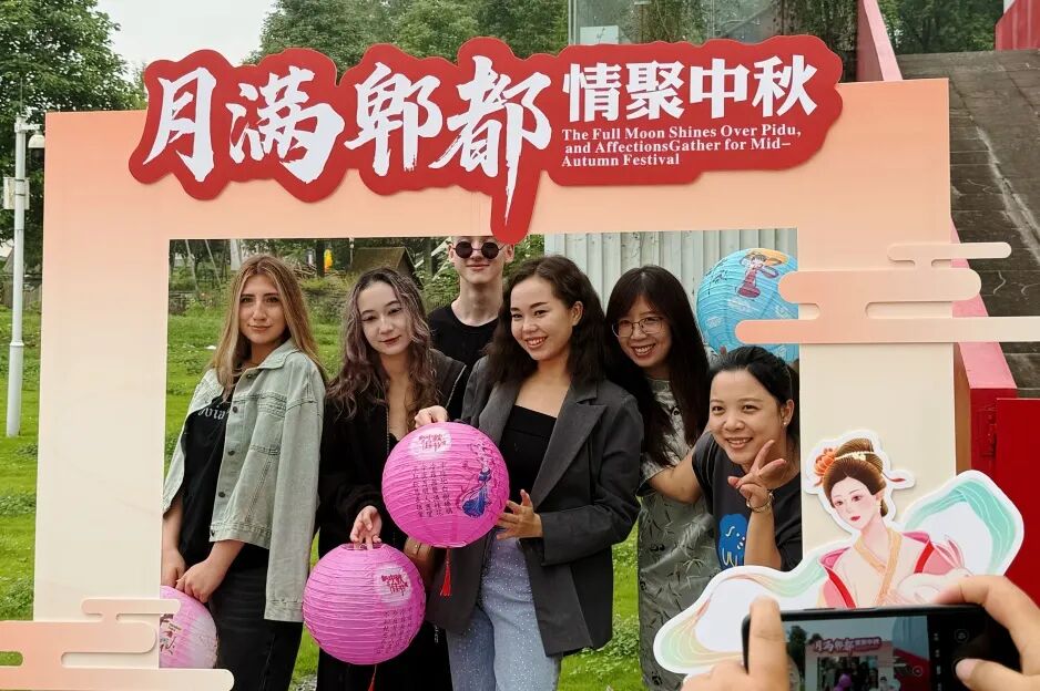 On the eve of the 2025 Mid-Autumn Festival, the “Home in Chengdu”—the Full Moon Shines over Pidu and Affections Gather for Mid-Autumn Festival Event was held at the Anjing Shu Embroidery Cultural Creative Park in Pidu District, where over 60 foreign nationals participated with great enthusiasm.