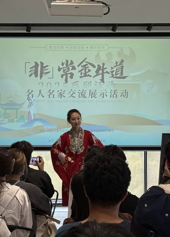 On the eve of the 2025 Mid-Autumn Festival, the “Home in Chengdu” 2025 Extraordinary Jinniu—Celebrity and Master Exchange and Exhibition Event successfully concluded at the College of Chinese & ASEAN Arts (Fenghuangshan Campus). Jointly hosted by the Foreign Affairs Office of the People’s Government of Jinniu District and the Jinniu District Bureau of Culture, Sports, and Tourism, the event featured two experience activities highlighting two intangible cultural heritage items—Peking opera and Sichuan-style marionette. Through expert lectures, hands-on practice, and creative demonstration, the event provided over 100 Chinese and international participants with an immersive experience of intangible cultural heritage.
