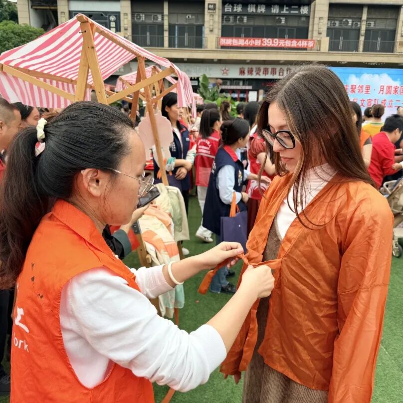 The event featured various interactive sessions, including Hanfu photo opportunities, pitch-pot games, couplet writing, and mooncake tasting. It not only enhanced the cultural engagement of Chinese and foreign community residents but also established a platform for foreign nationals to better understand Chinese traditions and integrate themselves into the local community. Participants expressed that they have gained a deeper understanding of the Mid-Autumn Festival culture through their firsthand experiences and felt the warmth and inclusiveness of their “home in Chengdu”.