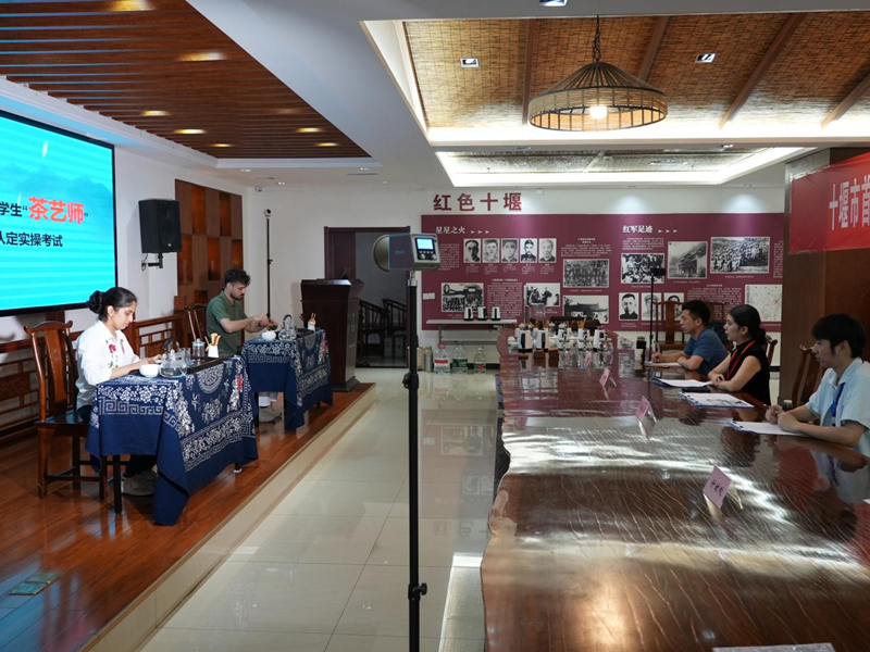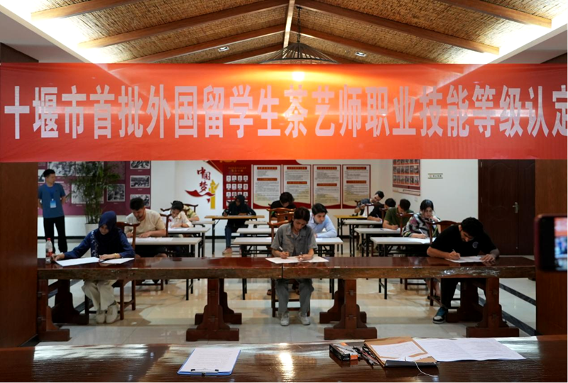 On June 29th, the first batch of foreign students from Shiyan Tea Art Association held the "Tea Artist" vocational skills level certification examination at Wudang Tea City. 14 Pakistani students participated in the theoretical examination and skill operation assessment for Tea Artist (Level 5, Junior). This was the first time that foreign individuals from our city participated in the vocational skills level certification in the tea industry.