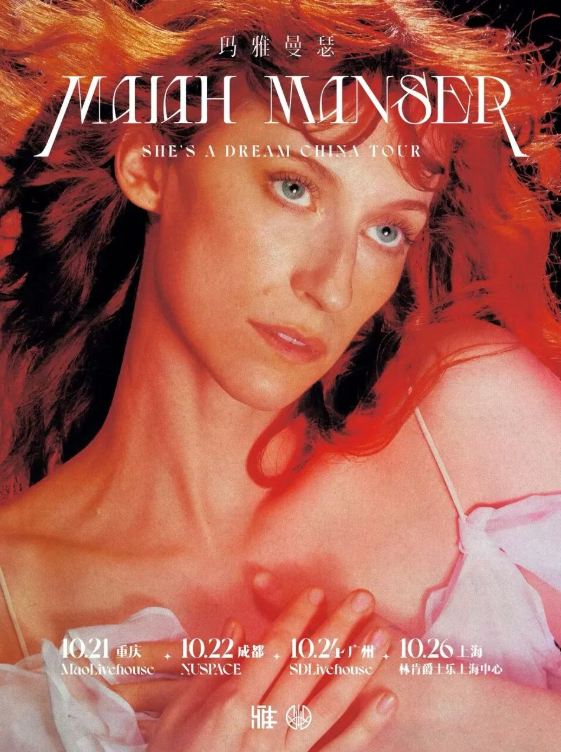 Seattle‑born singer‑songwriter Maiah Manser brings her spellbinding voice and cinematic soundscapes to Guangzhou on her 2025 China Tour. Blending art‑pop, electronic textures, and soulful lyricism, Manser has carved out a reputation for performances that feel both intimate and otherworldly. Her music moves effortlessly between ethereal ballads and pulsing, dance‑driven anthems, creating an atmosphere that is at once vulnerable and powerful. With a stage presence often described as magnetic, she transforms live shows into immersive journeys of sound and emotion. This Guangzhou stop offers audiences a rare chance to experience her haunting artistry and bold, genre‑defying vision up close.
