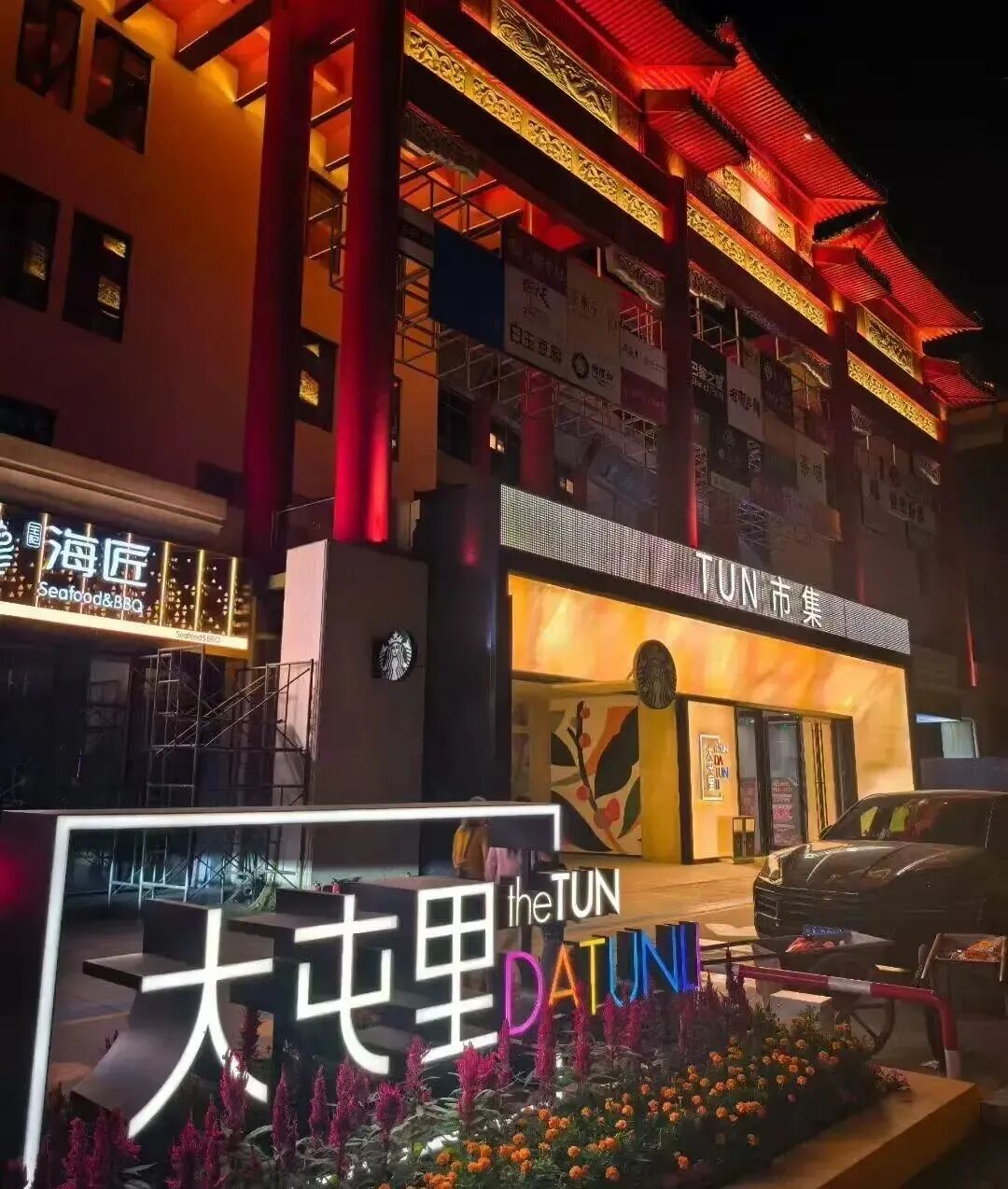 The first and second floors focus on catering services , including a late-night food area that hosts popular brands such as Starbucks, Tokugawa (Dechuanjia, a Japanese restaurant chain), and Nanmen Shuanrou Hot Pot. Visitors also have the chance to try traditional Beijing-style Noodles with Soybean Paste. The third and fourth floors provide hotel services , with branches of brands like Atour Hotel, Crystal Orange Hotel, and Hi Inn already in operation. With these establishments, Datunli is expected to become a unique lifestyle destination highlighted by boutique hotels, cuisines from around the world, Beijing's time-honored brands, a market with living necessities, a food court, bars, and KTVs.