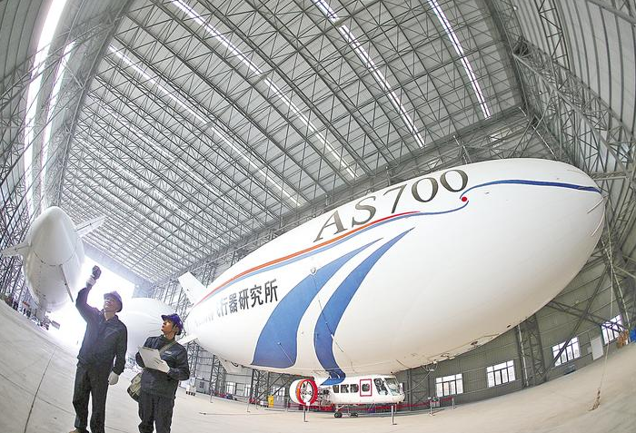Technicians debug a new AS700 manned airship at a plant on Mar. 12, 2026, in Jingmen City, Hubei Province. As China's first domestically developed manned airship, the AS700 manned airship is expected to be widely used in low-altitude economic scenarios such as cultural tourism and security patrols. It has so far secured 42 orders. (Photo: pic.hubeidaily.net/Zhao Ping and Dai Shiqi)